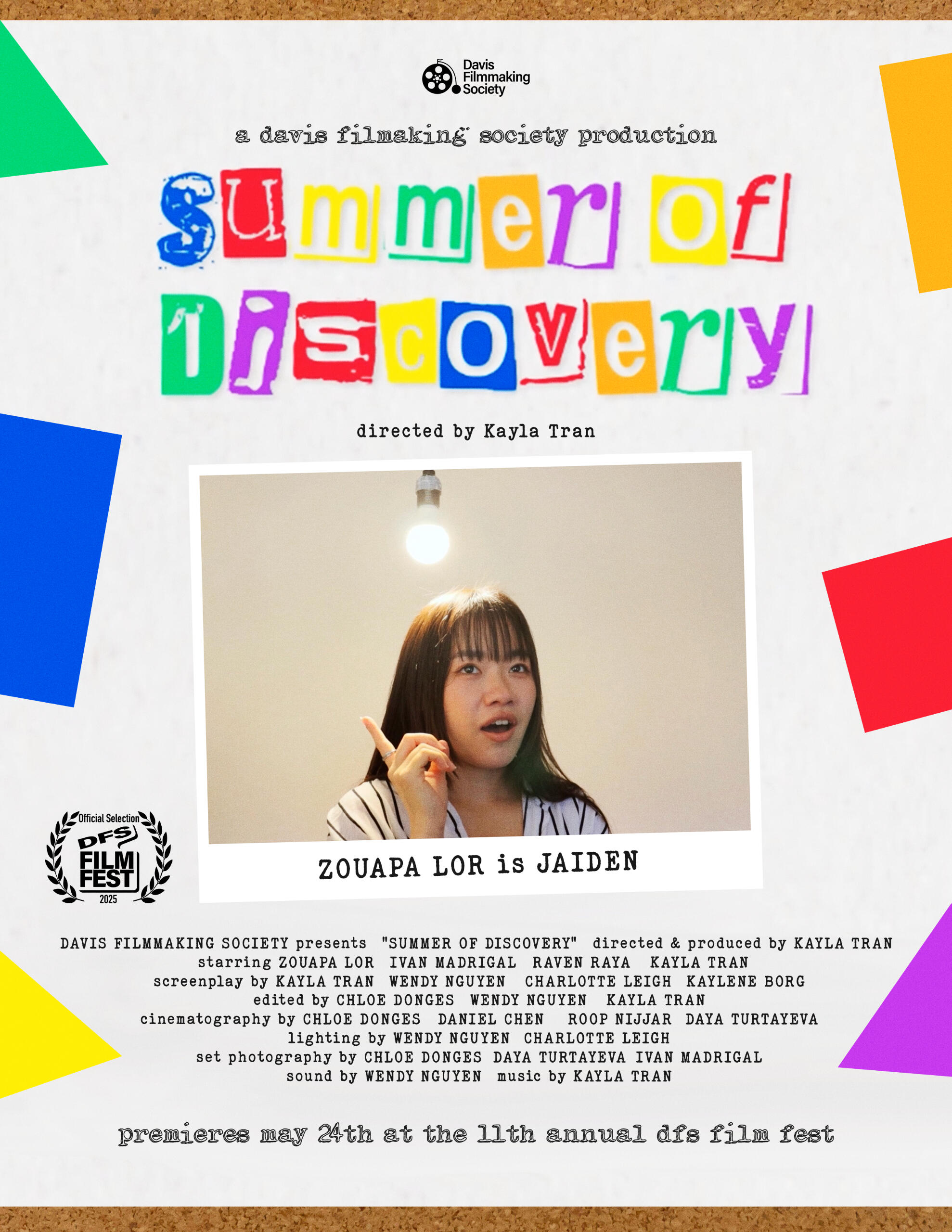 A Davis Filmmaking Society (DFS) production about an ambitious high school senior who spends a summer deciding what to study at university by experimenting with different activities. The short film premiered at the 2025 DFS Film Fest.Film Credits: Director, Producer, Co-Writer, Co-Editor