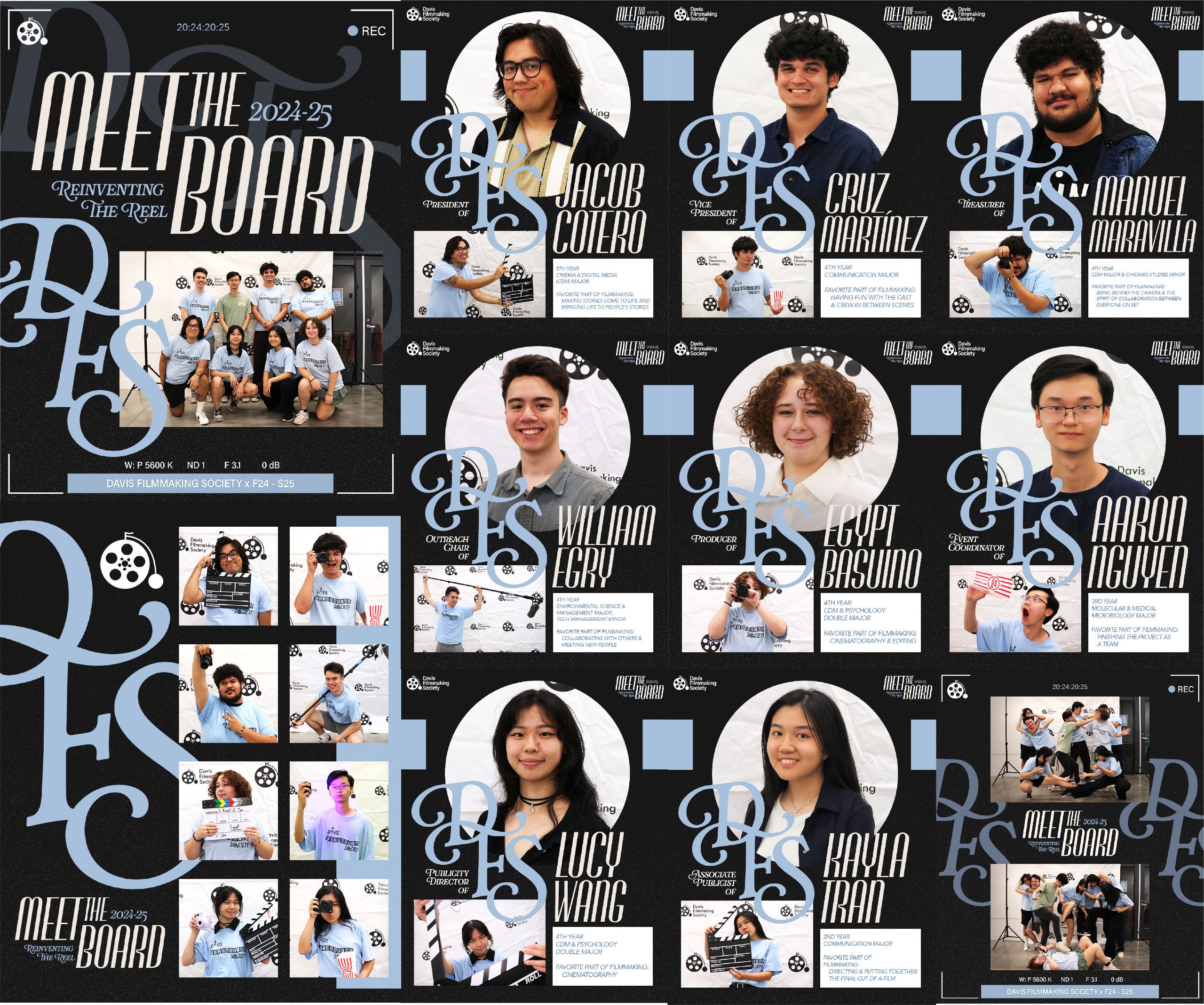 Throughout the 2024-25 academic year at UC Davis, I designed numerous graphics as the associate publicist of the Davis Filmmaking Society (DFS), a student-led filmmaking organization. Graphic design projects included a brand marketing campaign for the 2025 DFS Film Fest, Instagram posts, and merchandise.